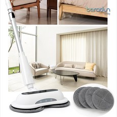 국내에서 만든 강력한 듀얼파워스핀 모터로 먼지와 물때를 동시에 털고 닦아내며, 극세사 패드 4장을 기본 제공해 바닥 손상 걱정 없이 깨끗하게 청소하는 무선 물걸레청소기입니다.
