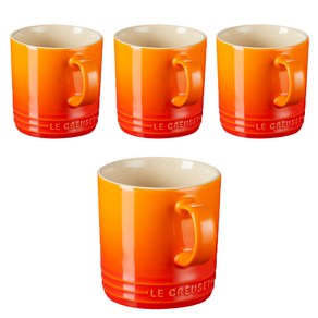 르크루제 머그 350ml 4개 세트는 선명한 오렌지 색상으로 테이블에 화사함을 더하며, 넉넉한 용량과 견고한 세라믹 재질로 음료를 편리하게 즐길 수 있고, 일상용과 선물용 모두 활용하기 좋습니다.