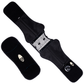 골반과 허리를 동시에 지지하여 안정성을 높이고 운동이나 일상생활에서 허리 부담을 줄여주는 블랙 색상의 조절 가능한 보호대.