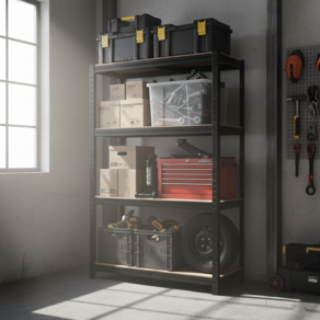 - 철제 앵글 구조로 중량물도 안정적으로 수납 가능